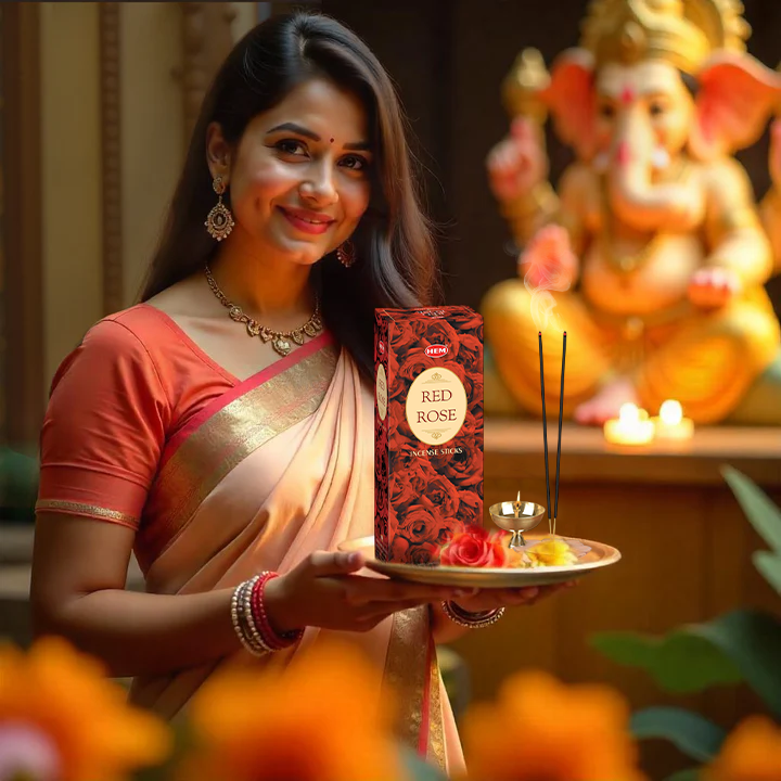 HEM Red Rose Incense Sticks - Pack of 6 (20 Sticks Each)