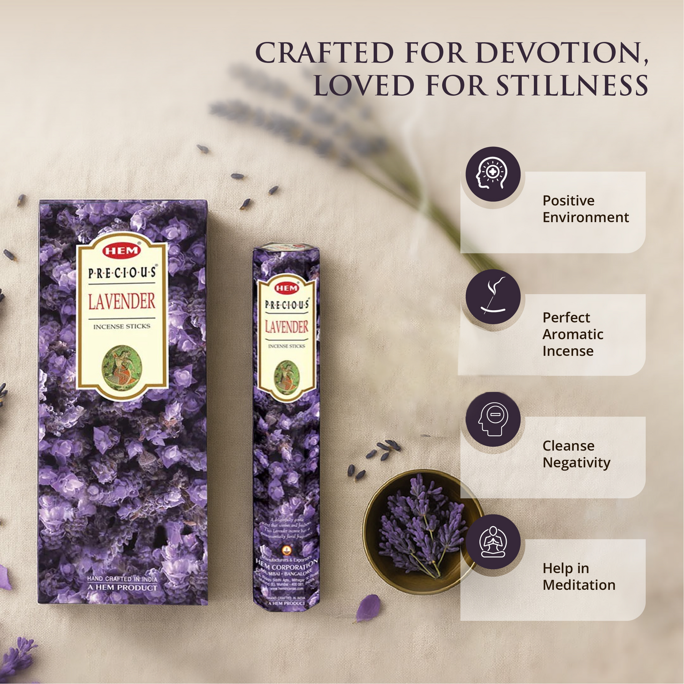 HEM Precious Lavender Incense Sticks - Pack of 6 (20 Sticks Each)