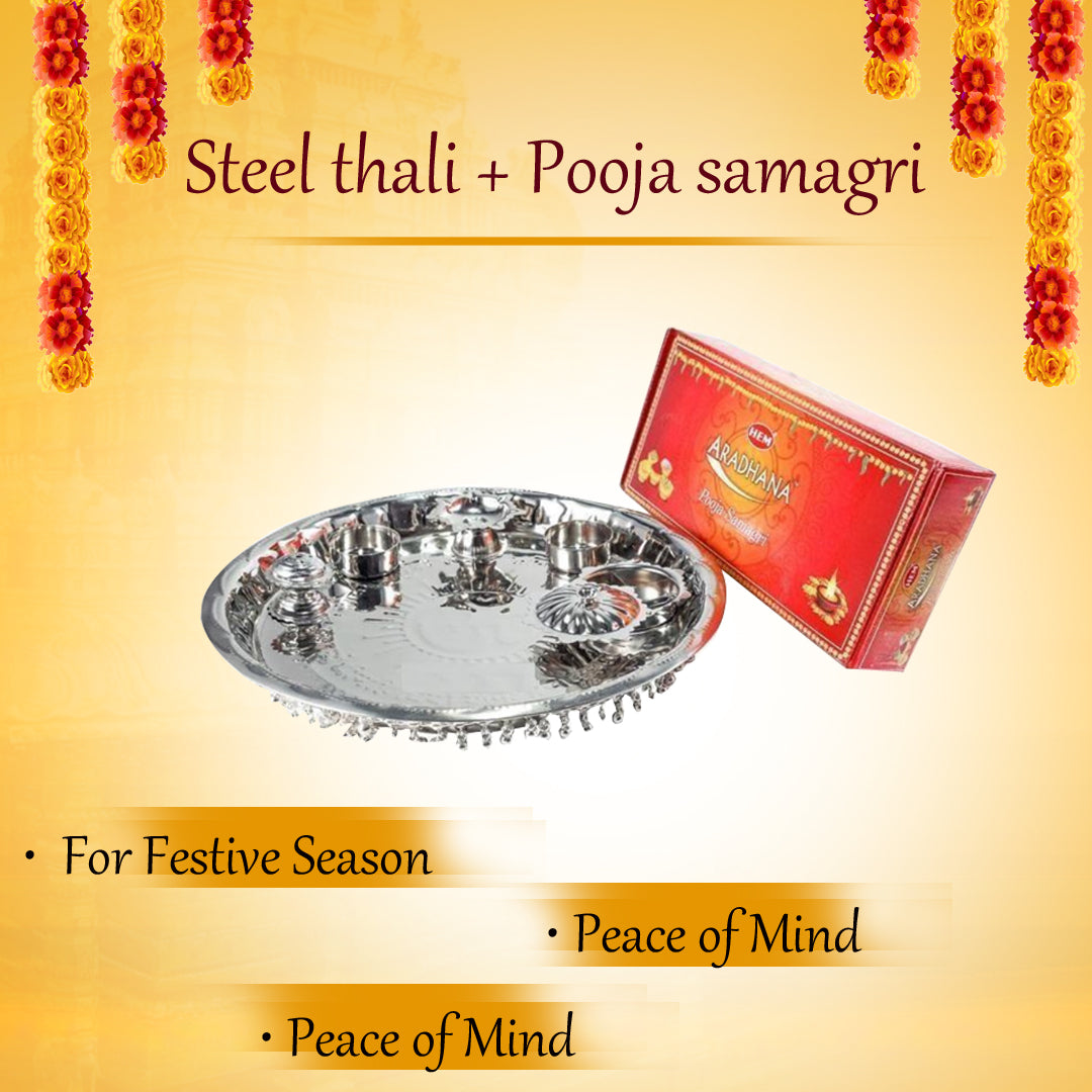 • MRP: Rs 700 (Rs. 450 for Pooja thali+ Rs 250 for Pooja samagri sticks)